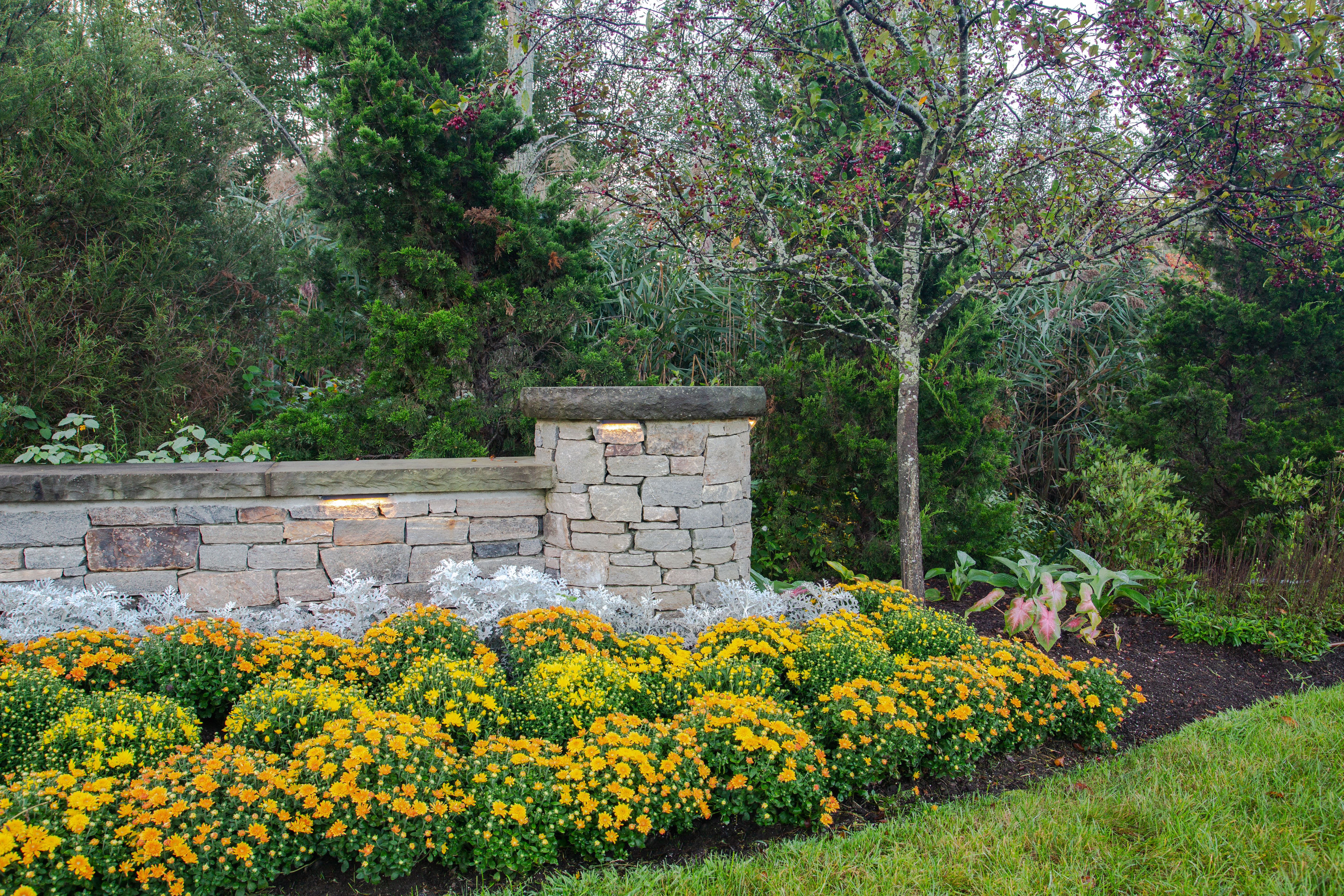 We worked with the client to recalibrate and refurbish their hardscape, drainage and lighting — and redesigned the gardens after over 20 years of the existing “same old.”