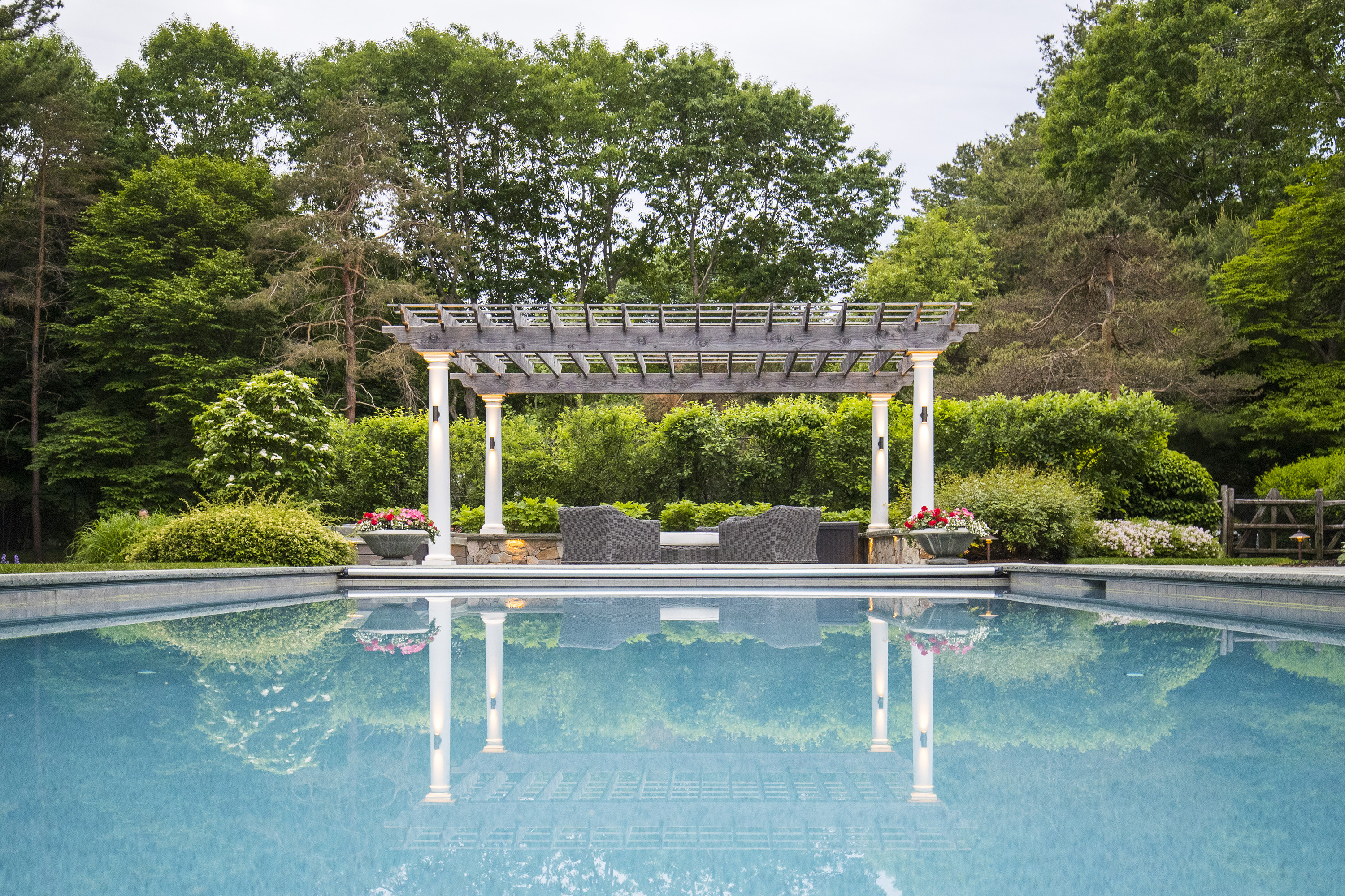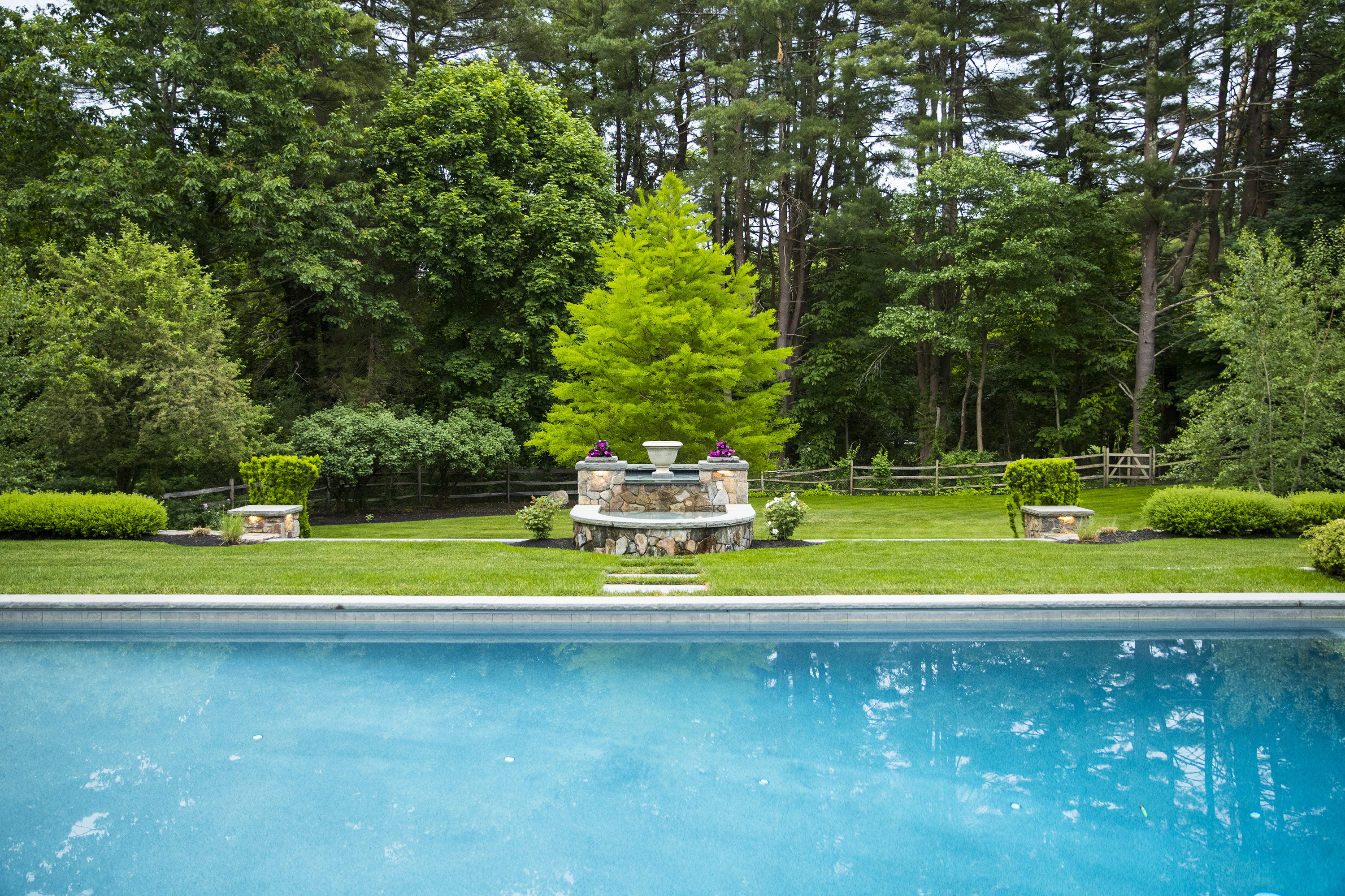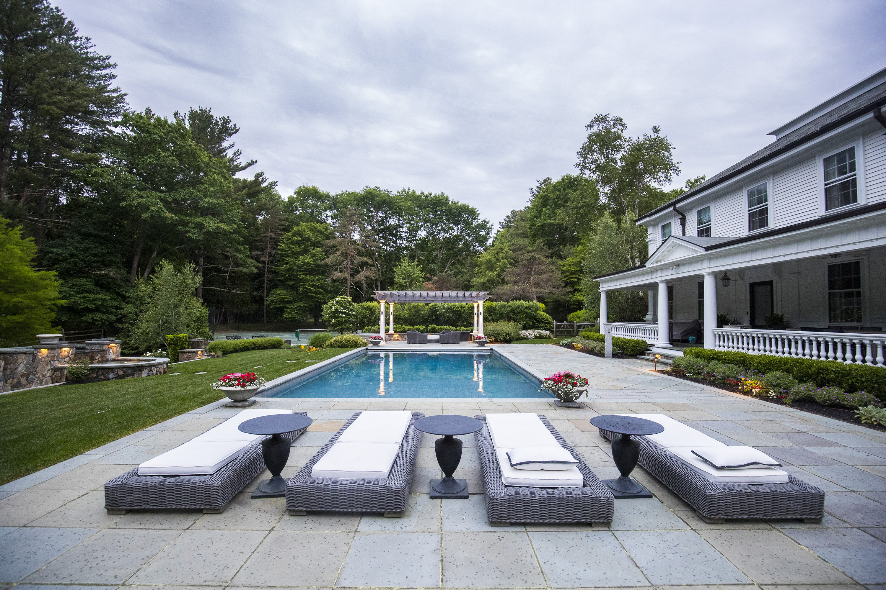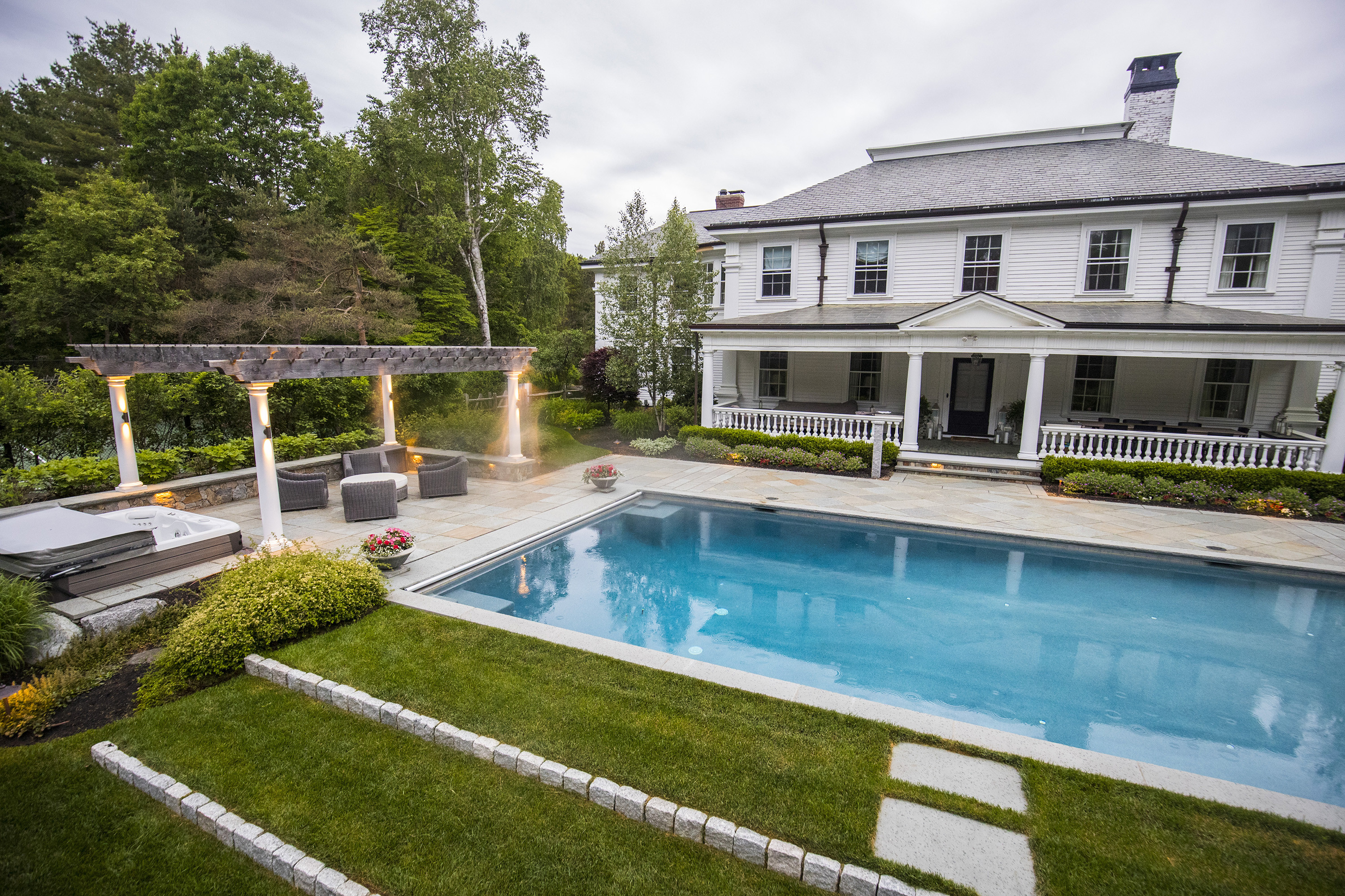 Owners of a classic mansion nestled among the forests north of Boston, these discerning clients needed a luxurious outdoor space that complemented their extensive home without overtaking it.