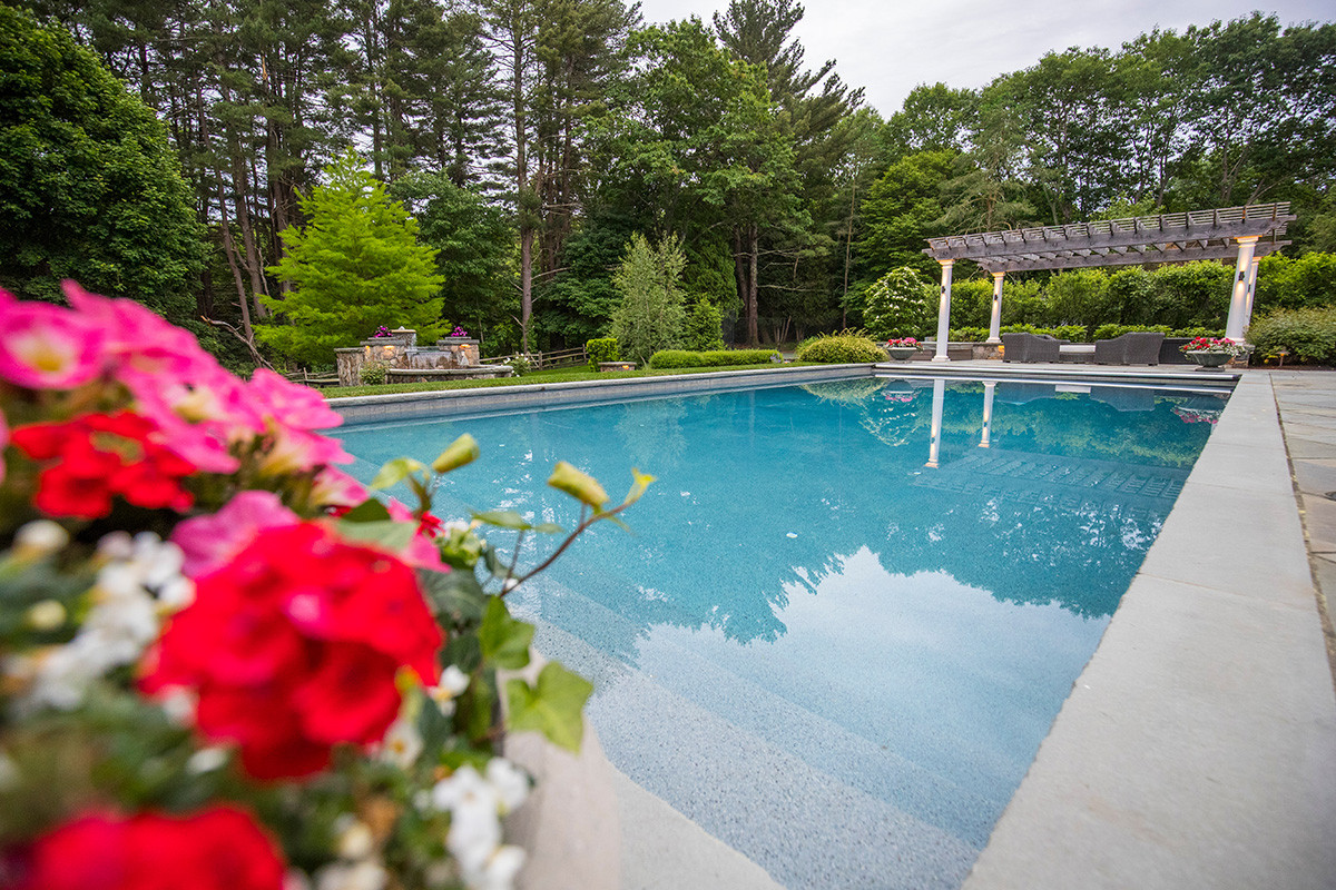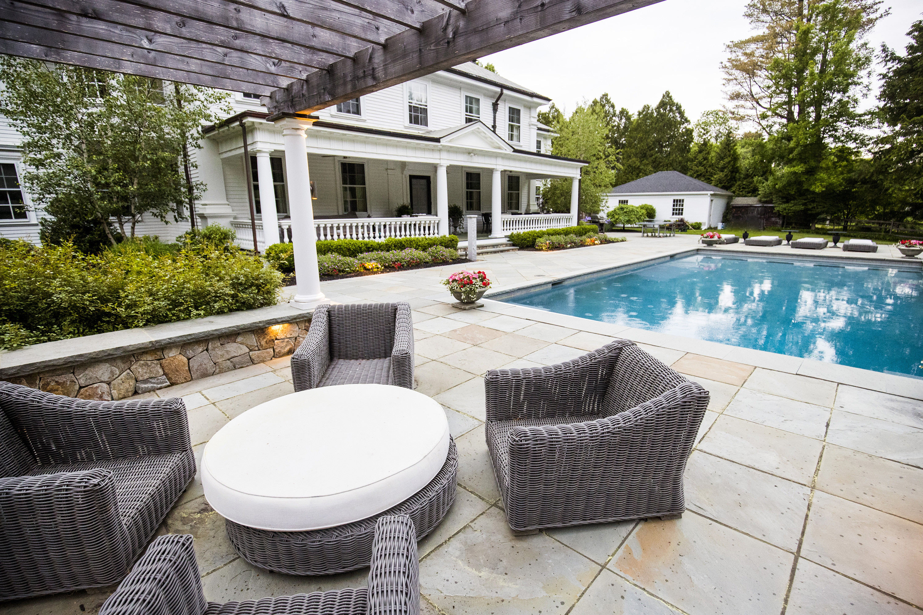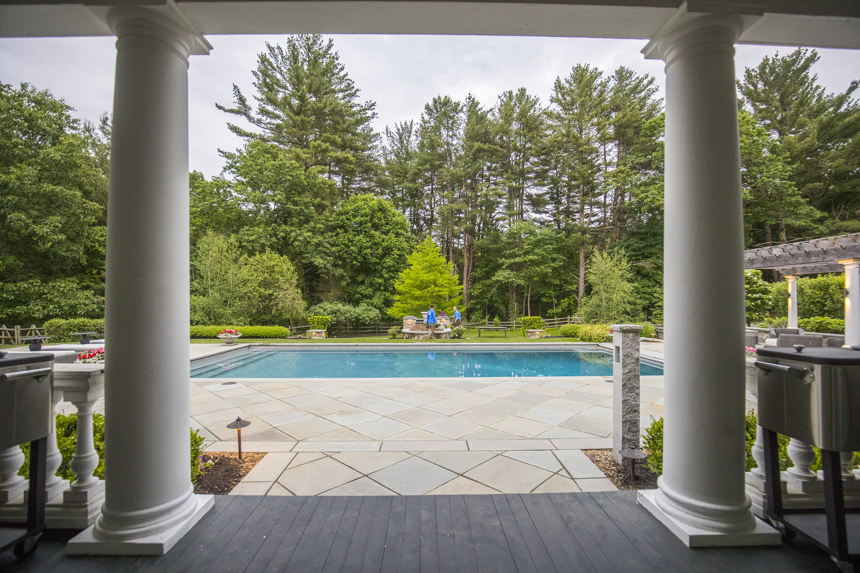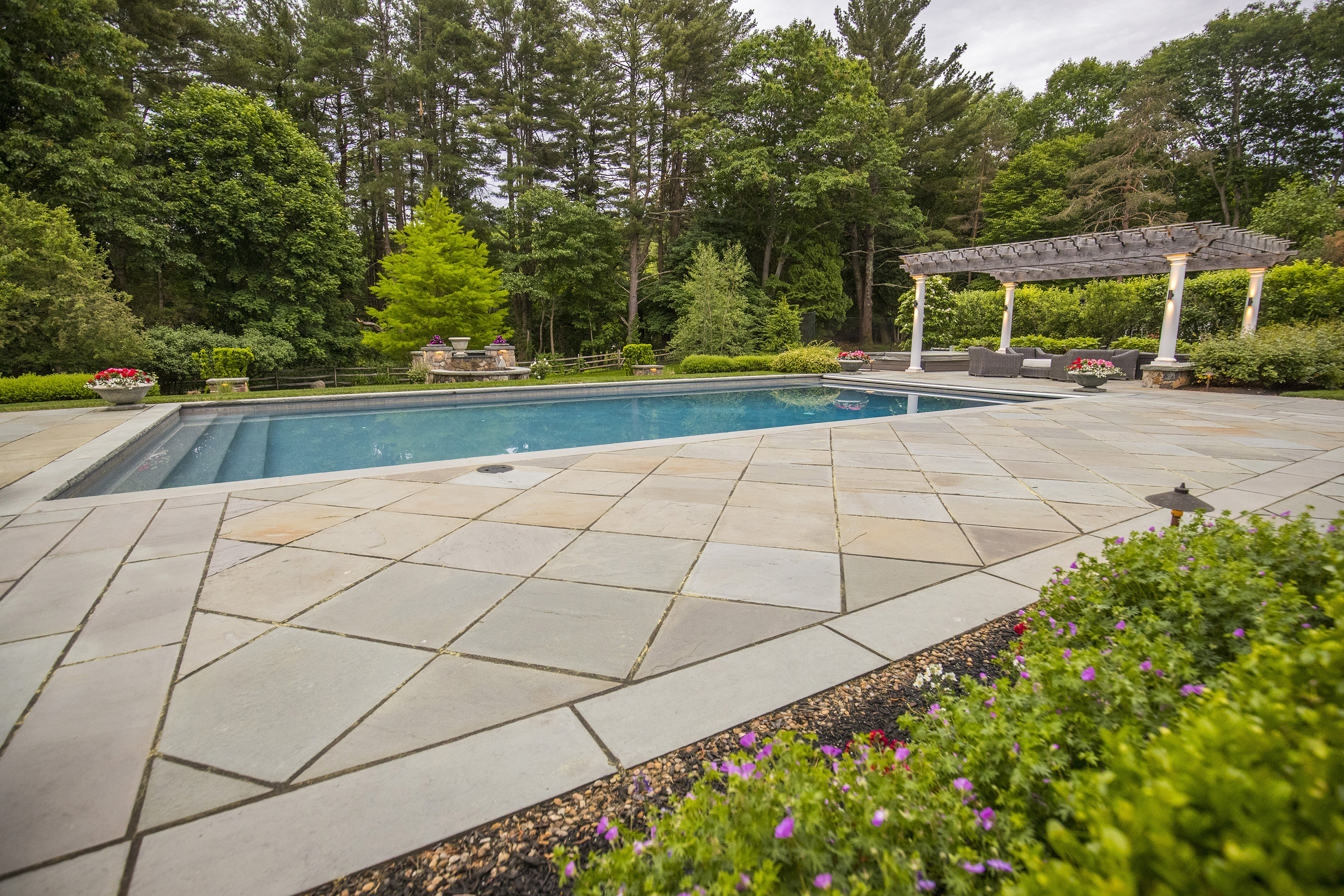 Owners of a classic mansion nestled among the forests north of Boston, these discerning clients needed a luxurious outdoor space that complemented their extensive home without overtaking it.