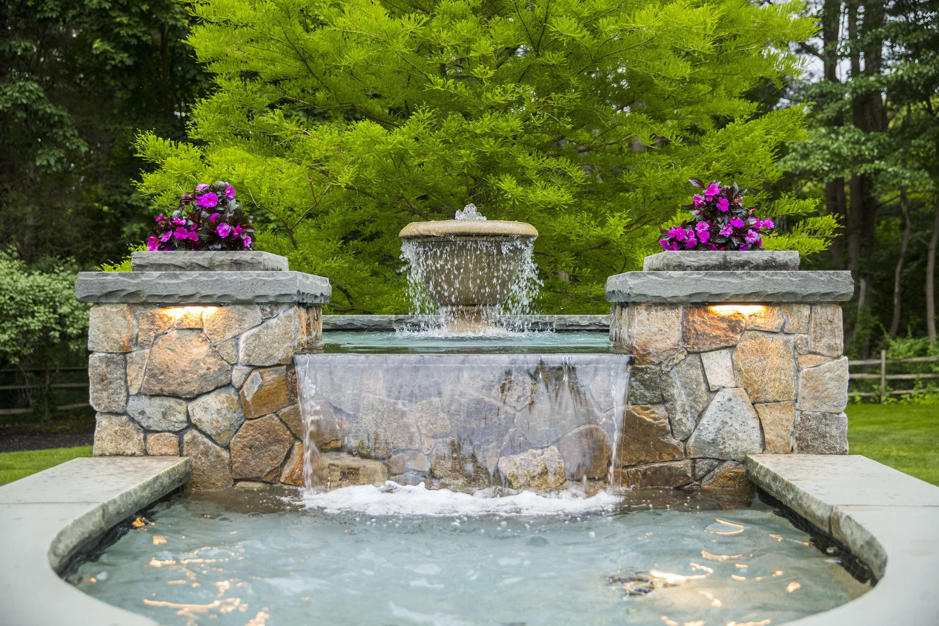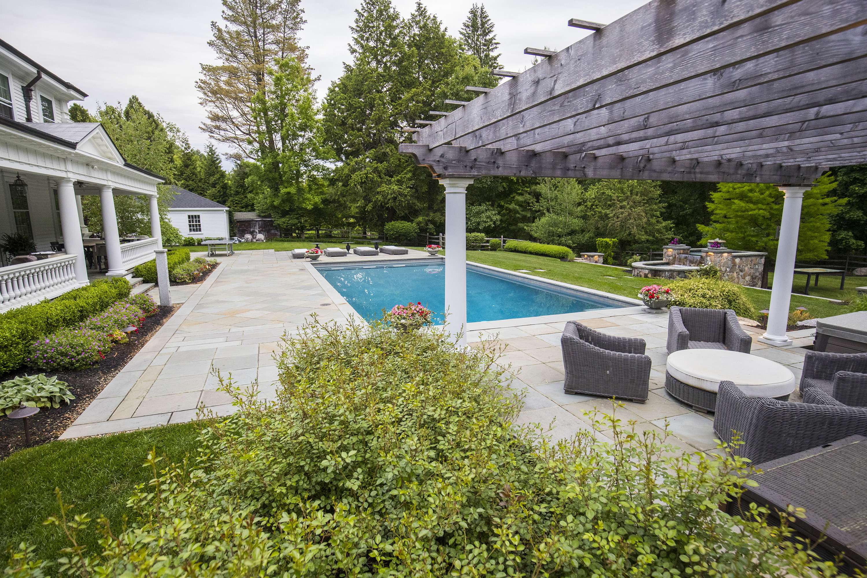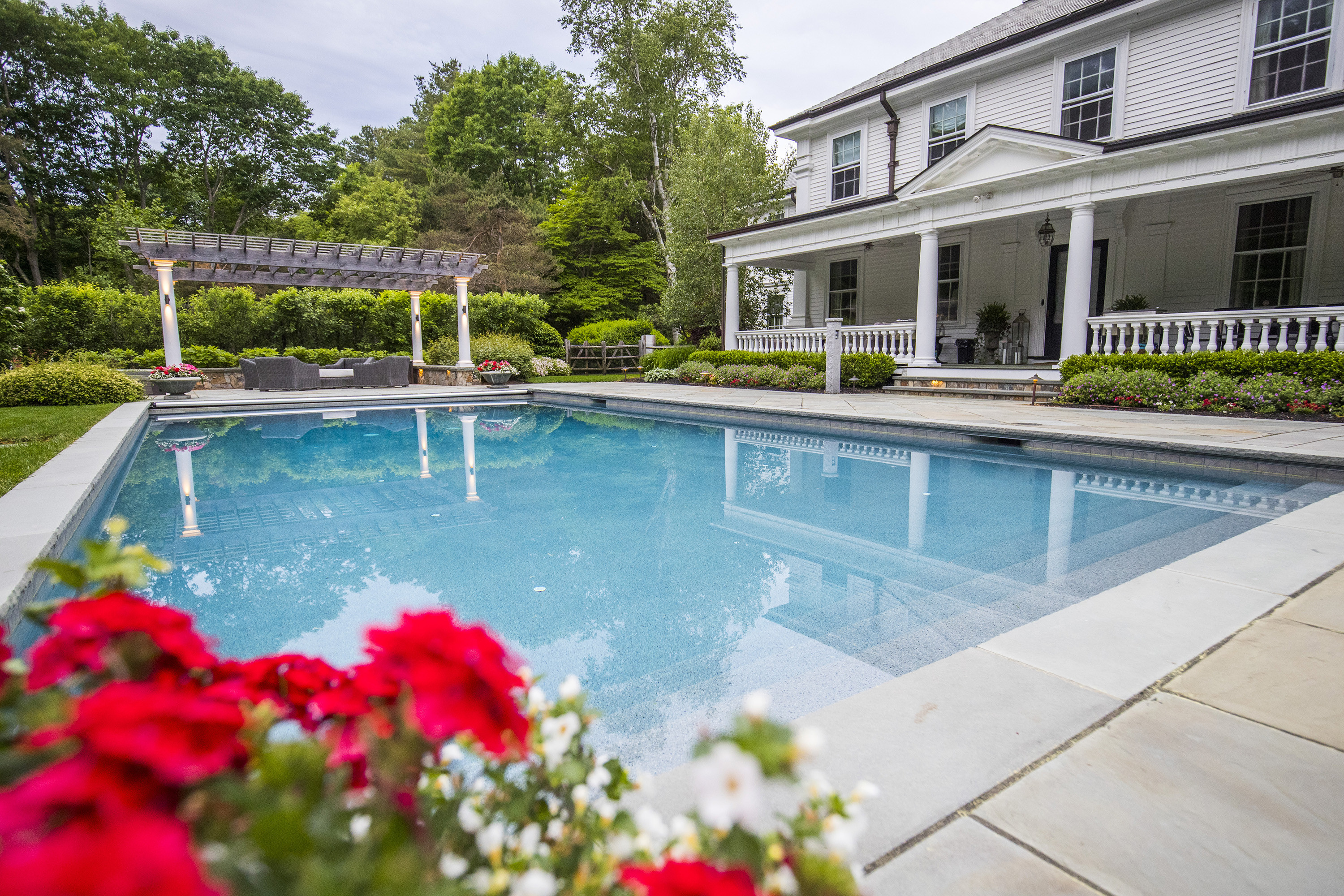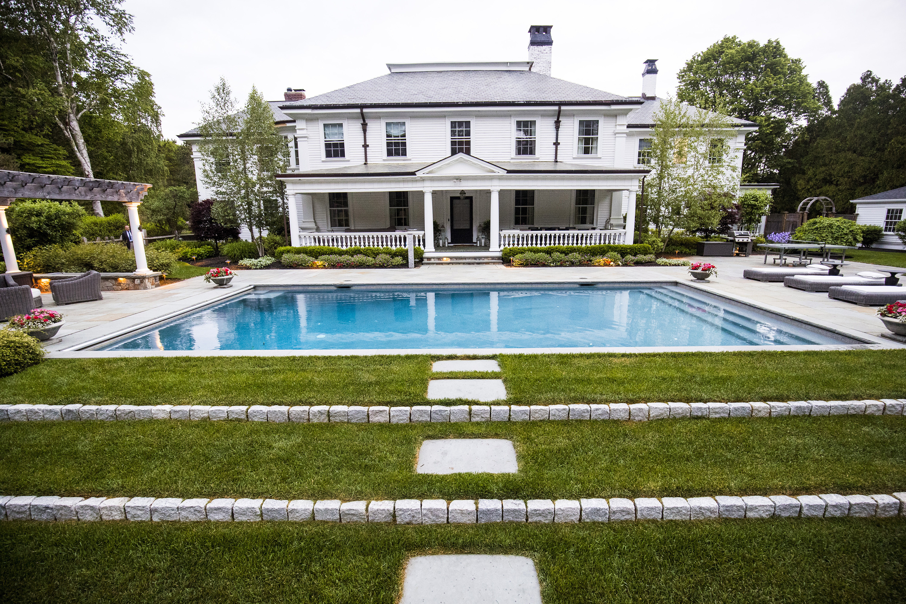 Owners of a classic mansion nestled among the forests north of Boston, these discerning clients needed a luxurious outdoor space that complemented their extensive home without overtaking it.