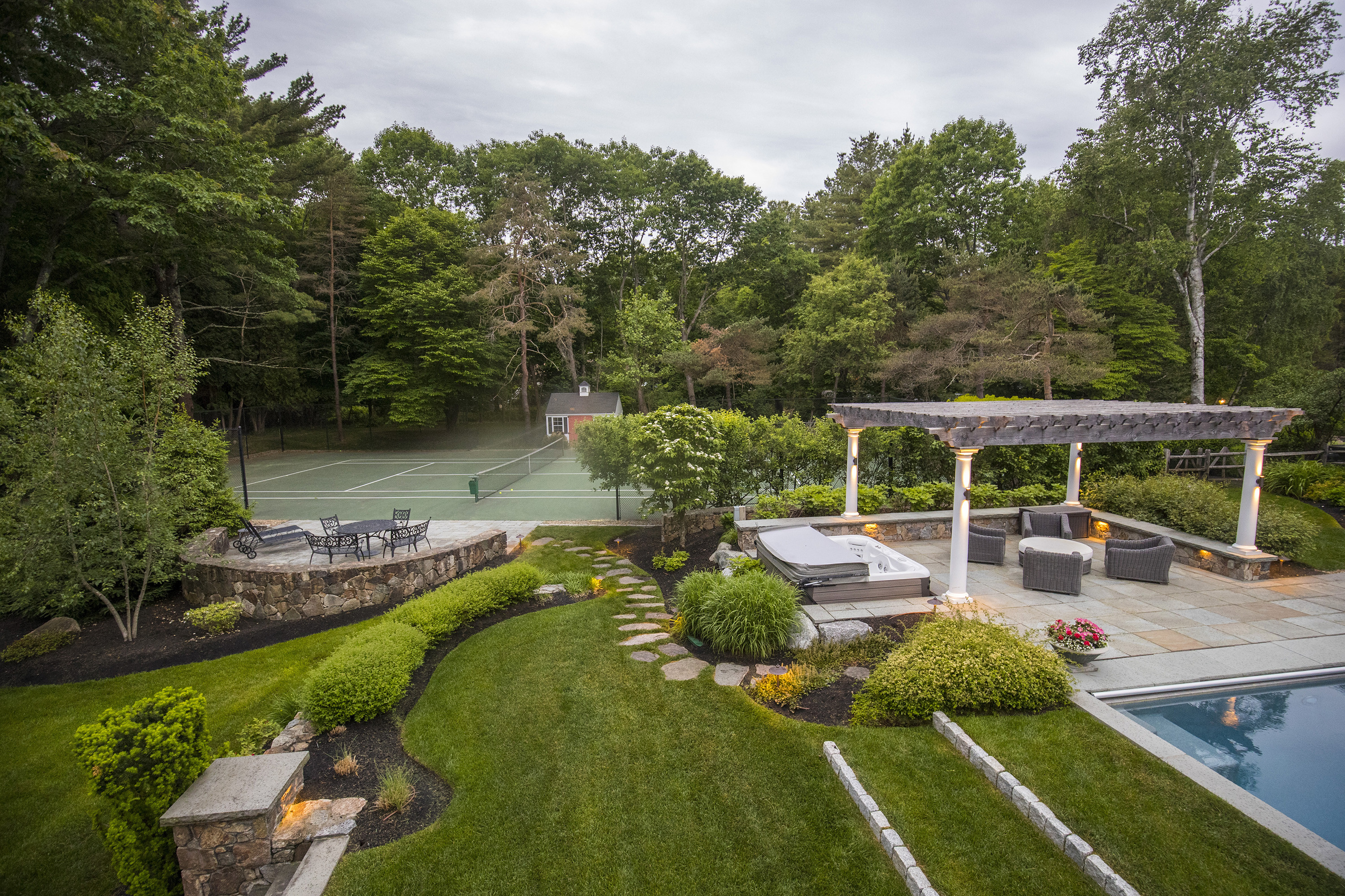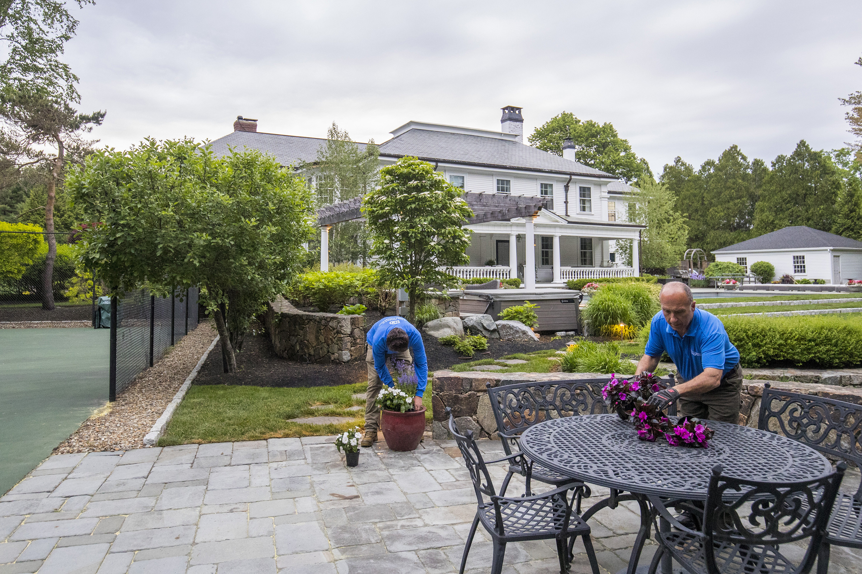 A revived outdoor space surrounding a stately Northern Massachusetts mansion continues to shine with regular property care.